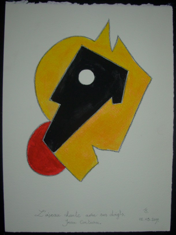 L’oiseau chante avec ses doigts. Jean Cocteau. Publié le 3 Mai, 2019 par jacques crahay aquarelle et encre s/fabriano 300 g.28 x 38 cm.02. 05. 2019. Compártelo: Partager sur X(ouvre dans une nouvelle fenêtre) X Partager sur Facebook(ouvre dans une nouvelle fenêtre) Facebook