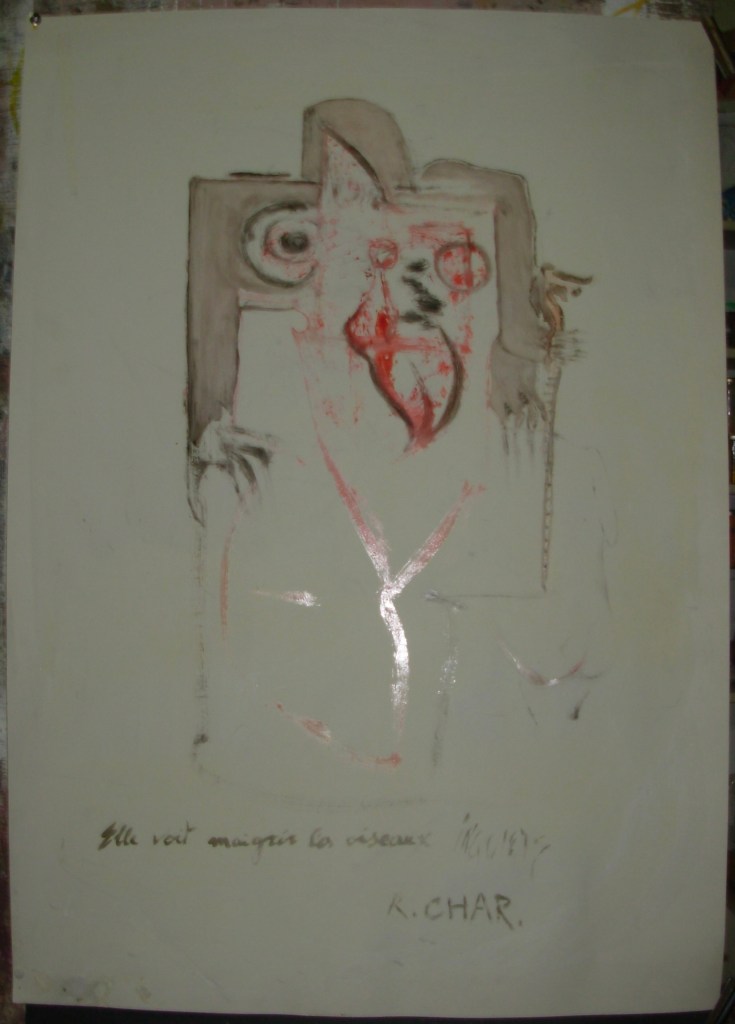 « Elle voit maigrir les oiseaux inquiets. » Publié le 6 juillet, 2023 par jacques crahay René CHAR huile s/papier enduit 72 x 102 cm. non daté, signé au dos. Compártelo: Cliquer pour partager sur X(ouvre dans une nouvelle fenêtre) X Cliquez pour partager sur Facebook(ouvre dans une nouvelle fenêtre) Facebook